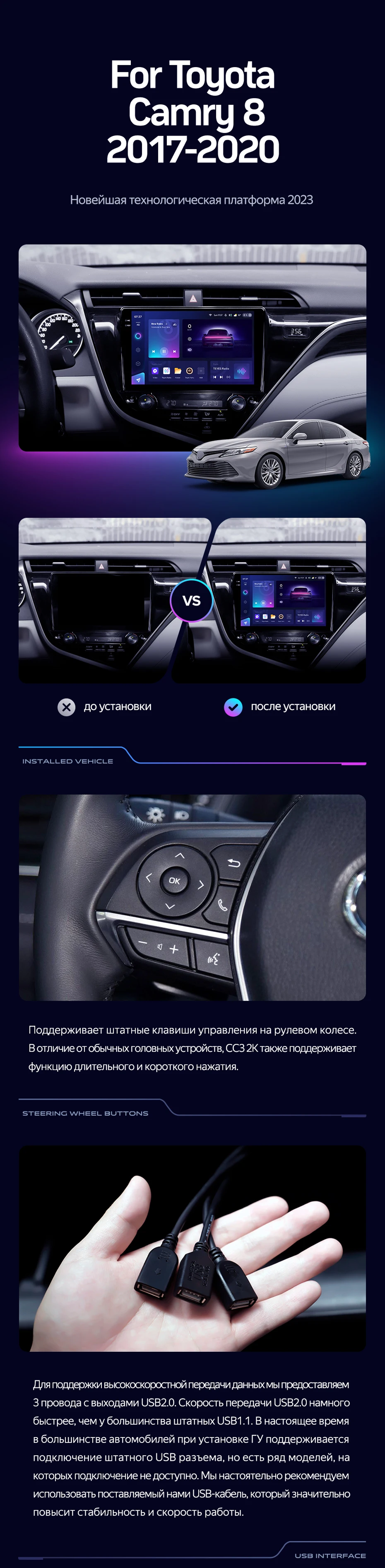 Штатная магнитола Teyes CC3 2K 360 6/128 Toyota Camry 8 XV 70 (2017-2020) Правый руль - купить всего за 56 600 руб. в интернет-магазине в Старом Осколе Teyes.com.ru. ✓ Самый лучший выбор мультимедиа ✓ Лучшая замена штатному ГУ ✓ Тел. +7 (800) 775-31-74