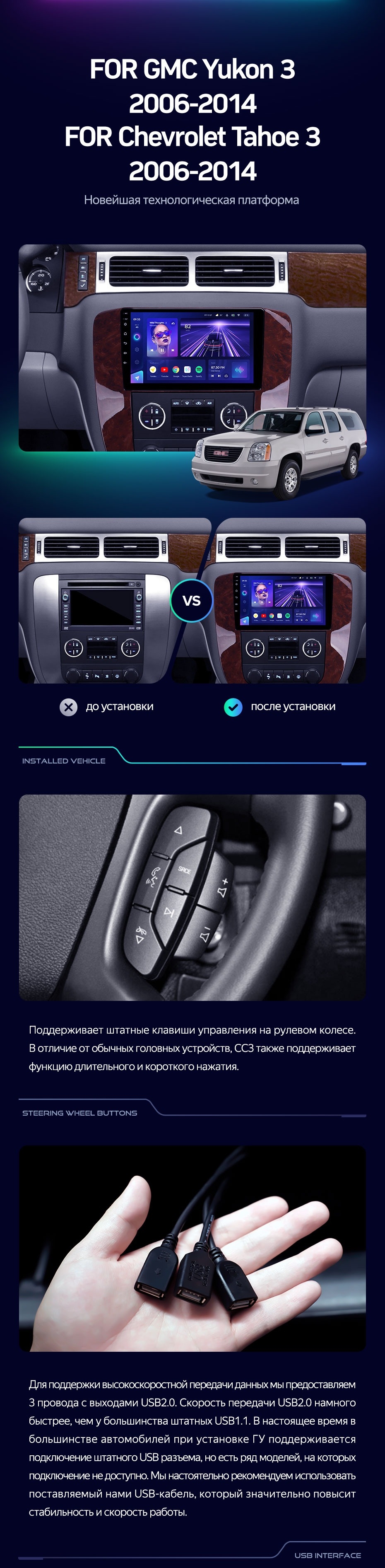 Штатная магнитола Teyes CC3 6/128 Chevrolet Tahoe (2006-2014) - купить всего за 46 200 руб. в интернет-магазине в Старом Осколе Teyes.com.ru. ✓ Самый лучший выбор мультимедиа ✓ Лучшая замена штатному ГУ ✓ Тел. +7 (800) 775-31-74