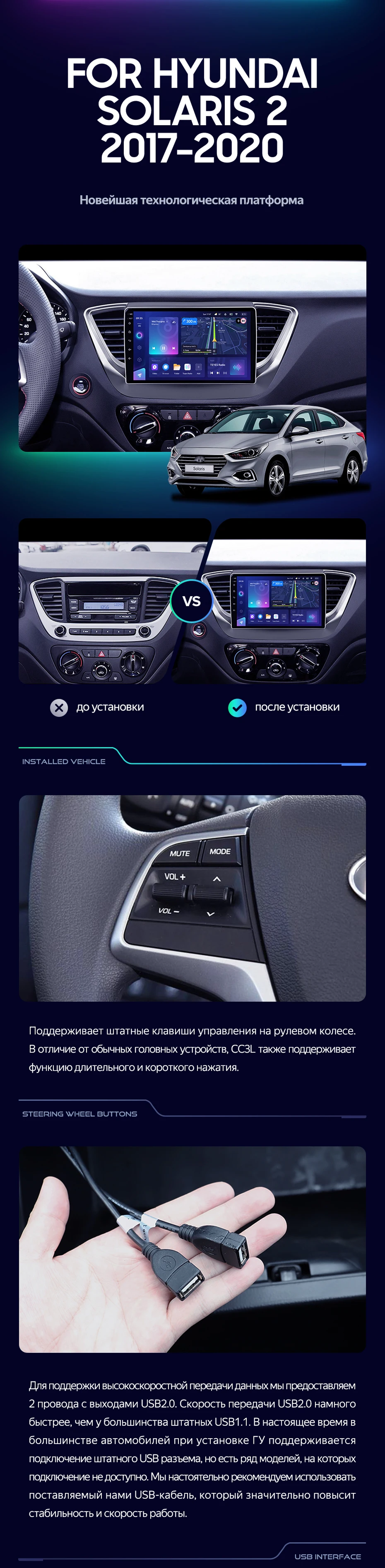 Штатная магнитола Teyes CC3L 4/32 Hyundai Solaris 2 (2017-2020) F2 (черный матовый) Тип-B - купить всего за 28 000 руб. в интернет-магазине в Старом Осколе Teyes.com.ru. ✓ Самый лучший выбор мультимедиа ✓ Лучшая замена штатному ГУ ✓ Тел. +7 (800) 775-31-74
