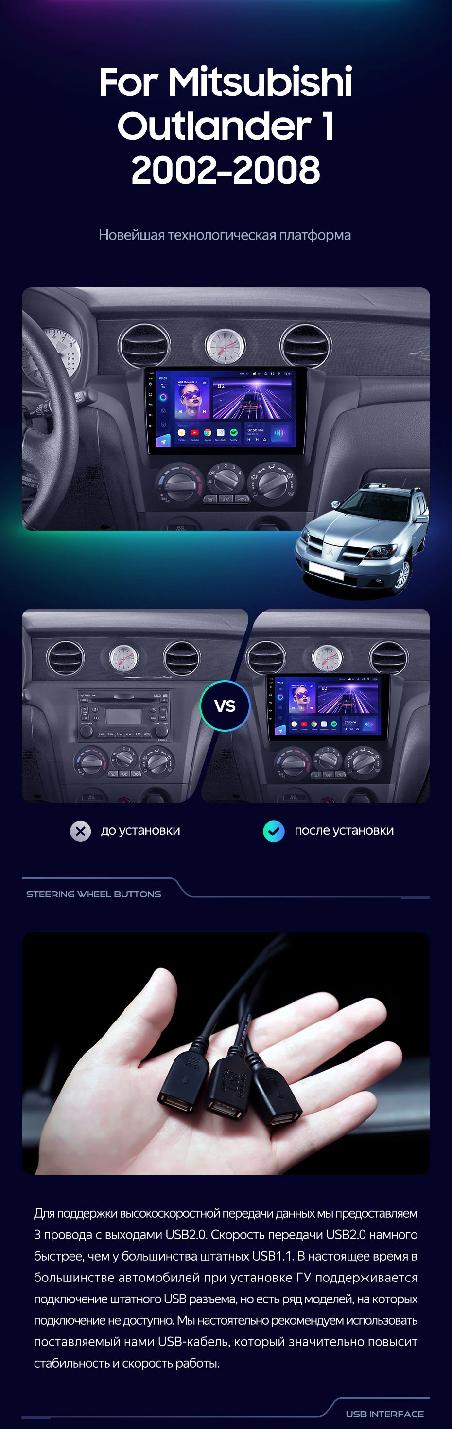 Штатная магнитола Teyes CC3L 4/32 Mitsubishi Outlander 1 (2002-2008) F1 - купить всего за 28 600 руб. в интернет-магазине в Старом Осколе Teyes.com.ru. ✓ Самый лучший выбор мультимедиа ✓ Лучшая замена штатному ГУ ✓ Тел. +7 (800) 775-31-74