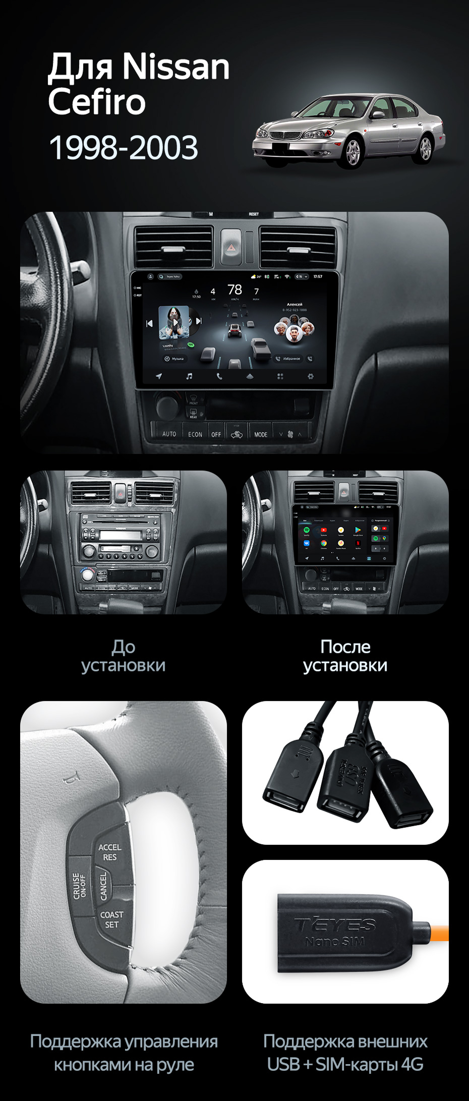 Штатная магнитола Teyes CC3L 4/32 Nissan Cefiro 3 A33 (1998-2003) F2 - купить всего за 23 600 руб. в интернет-магазине в Старом Осколе Teyes.com.ru. ✓ Самый лучший выбор мультимедиа ✓ Лучшая замена штатному ГУ ✓ Тел. +7 (800) 775-31-74