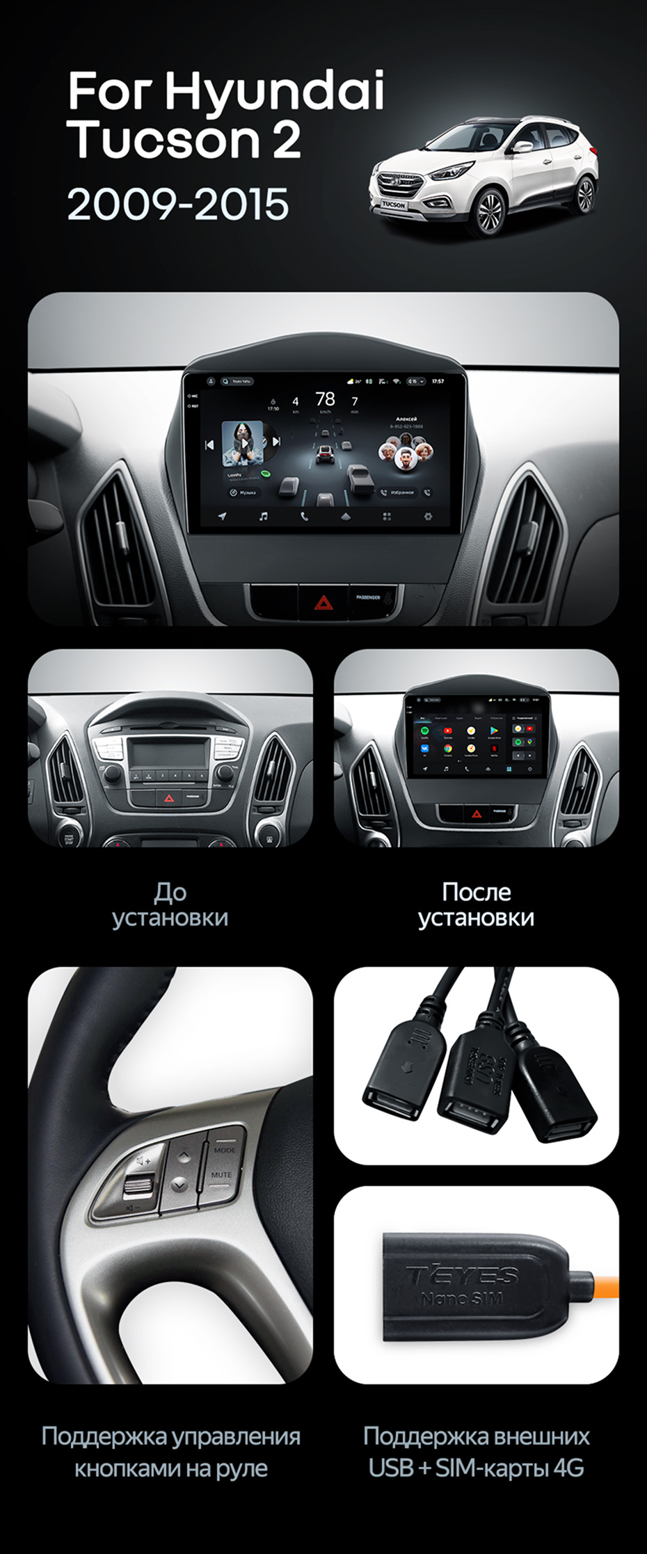 Штатная магнитола Teyes CC4 6/64 Hyundai ix35 (2009-2015) (Tucson 2) Тип-AB - купить всего за 47 170 руб. в интернет-магазине в Старом Осколе Teyes.com.ru. ✓ Самый лучший выбор мультимедиа ✓ Лучшая замена штатному ГУ ✓ Тел. +7 (800) 775-31-74