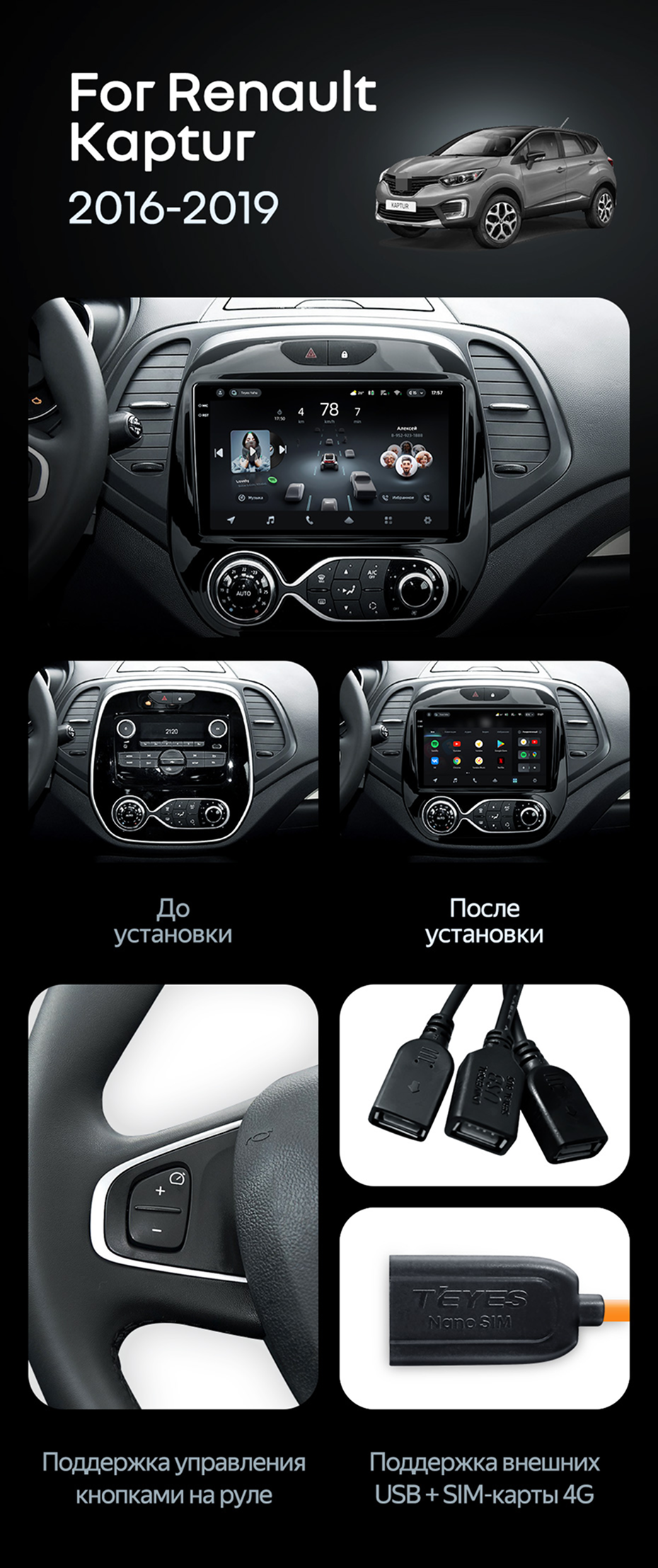 Штатная магнитола Teyes CC4 6/64 Renault Kaptur (2016-2019) F1 - купить всего за 50 050 руб. в интернет-магазине в Старом Осколе Teyes.com.ru. ✓ Самый лучший выбор мультимедиа ✓ Лучшая замена штатному ГУ ✓ Тел. +7 (800) 775-31-74