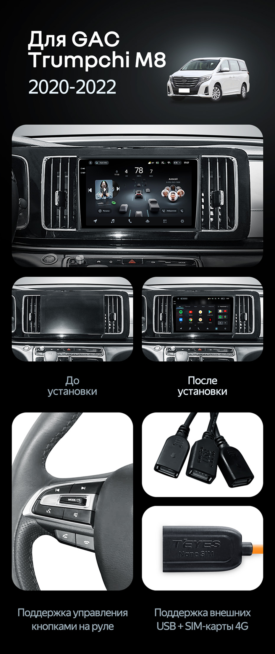 Штатная магнитола Teyes CC4 8/128 GAC Trumpchi M8 (2020-2022) - купить всего за 54 600 руб. в интернет-магазине в Старом Осколе Teyes.com.ru. ✓ Самый лучший выбор мультимедиа ✓ Лучшая замена штатному ГУ ✓ Тел. +7 (800) 775-31-74