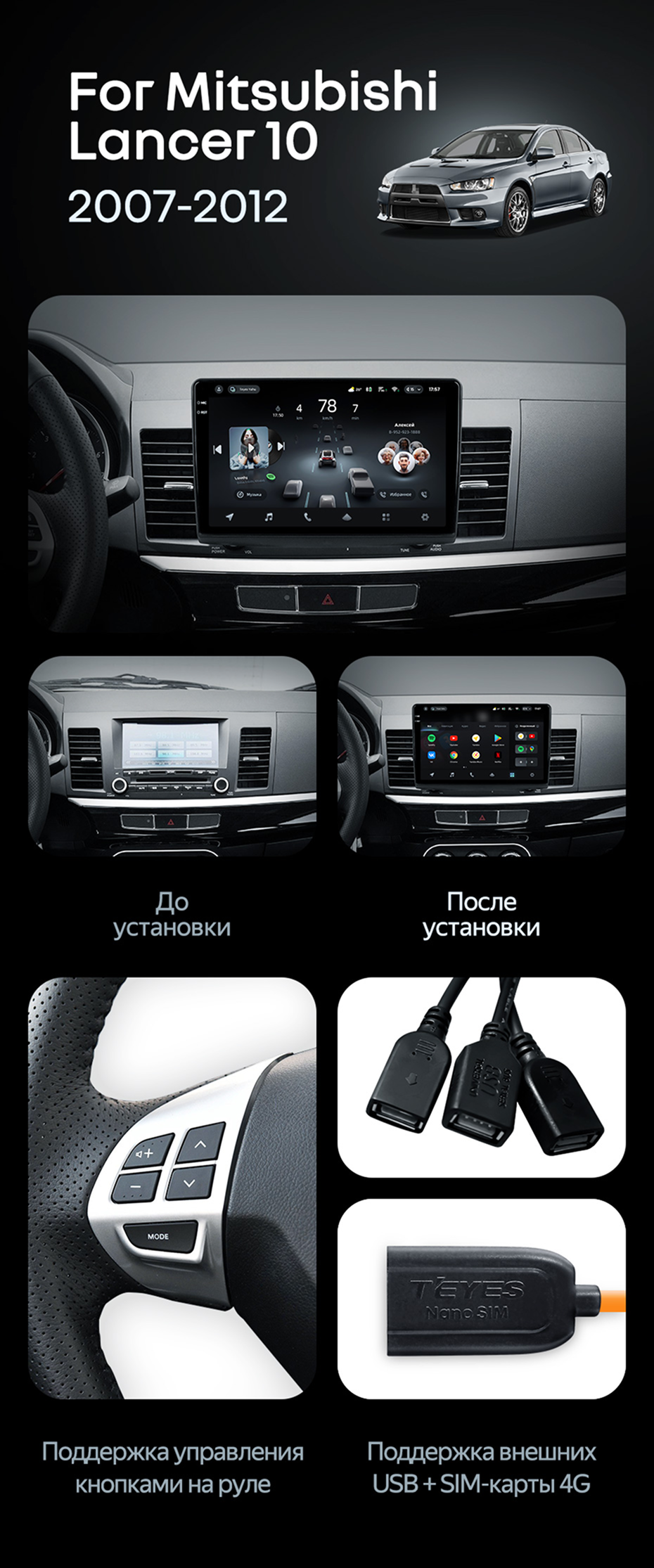 Штатная магнитола Teyes CC4 Pro 12/256 Mitsubishi Lancer 10 CY (2007-2012) Тип-B - купить всего за 66 500 руб. в интернет-магазине в Старом Осколе Teyes.com.ru. ✓ Самый лучший выбор мультимедиа ✓ Лучшая замена штатному ГУ ✓ Тел. +7 (800) 775-31-74