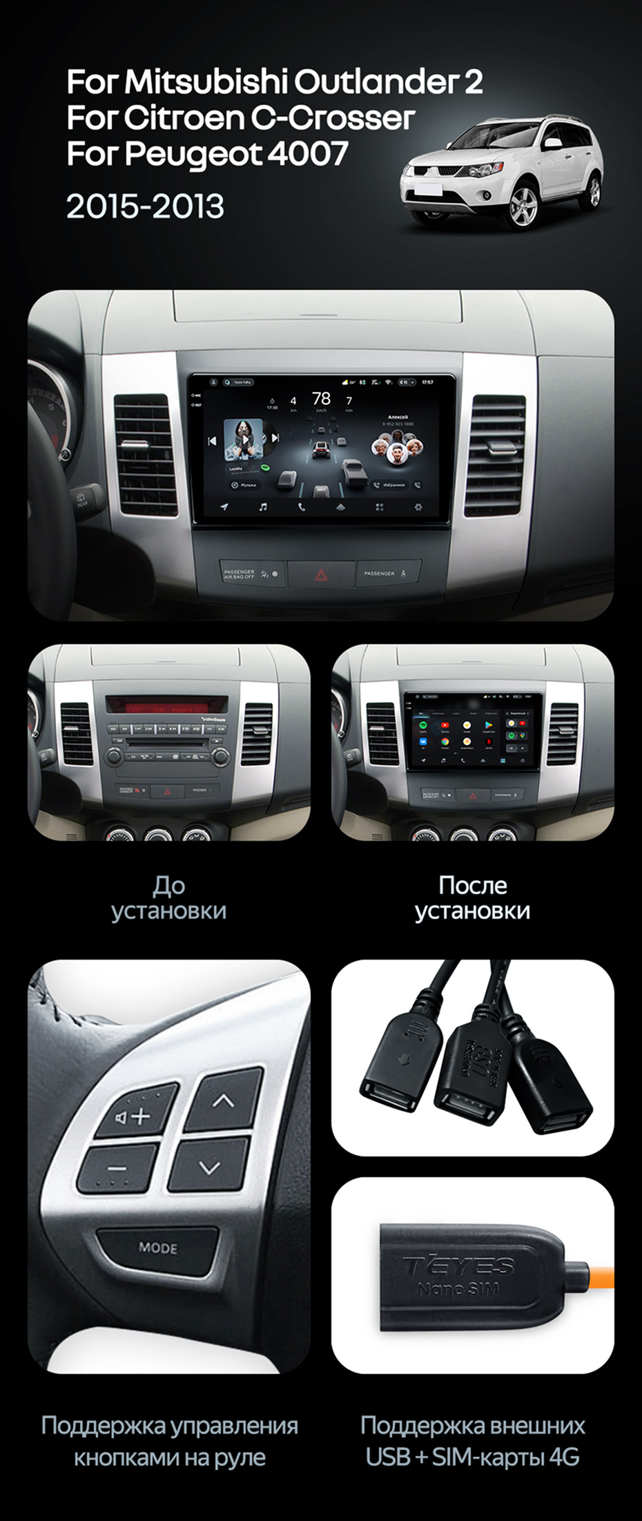 Штатная магнитола Teyes CC4 Pro 12/256 Mitsubishi Outlander 2 (2005-2011) Тип-B - купить всего за 67 470 руб. в интернет-магазине в Старом Осколе Teyes.com.ru. ✓ Самый лучший выбор мультимедиа ✓ Лучшая замена штатному ГУ ✓ Тел. +7 (800) 775-31-74