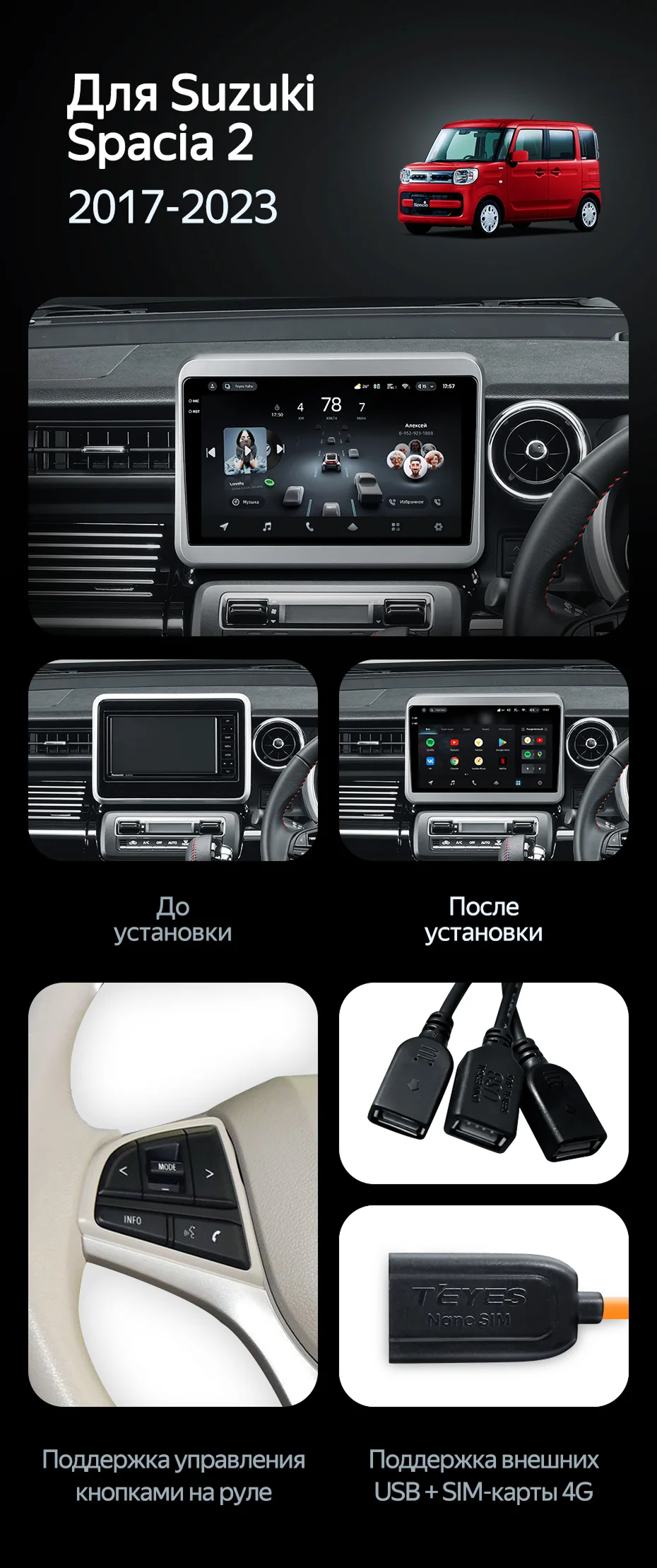 Штатная магнитола Teyes CC4 Pro 12/256 Suzuki Spacia 2 (2017-2023) - купить всего за 66 340 руб. в интернет-магазине в Старом Осколе Teyes.com.ru. ✓ Самый лучший выбор мультимедиа ✓ Лучшая замена штатному ГУ ✓ Тел. +7 (800) 775-31-74