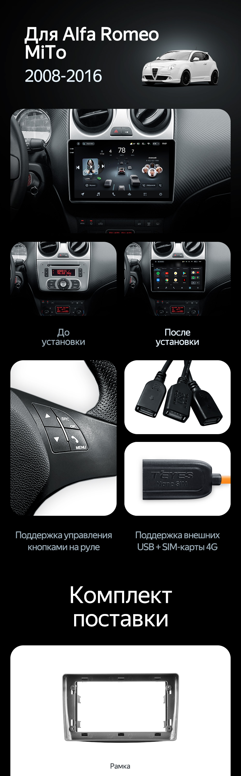 Штатная магнитола Teyes CC4L 6/64 Alfa Romeo MiTo 955 (2008-2016) - купить всего за 33 500 руб. в интернет-магазине в Старом Осколе Teyes.com.ru. ✓ Самый лучший выбор мультимедиа ✓ Лучшая замена штатному ГУ ✓ Тел. +7 (800) 775-31-74