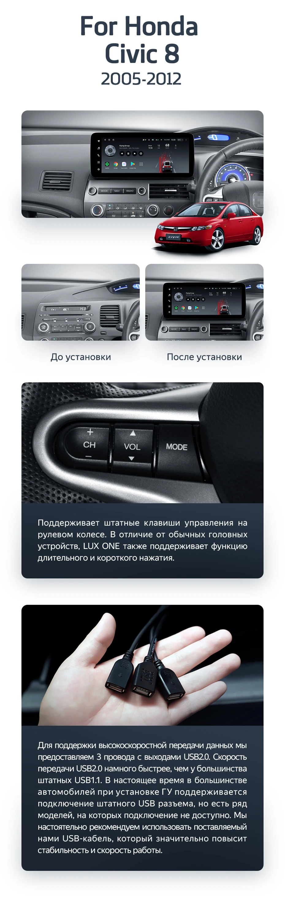 Штатная магнитола Teyes LUX ONE 360 6/128 Honda Civic 8 FK FN FD (2005-2012) Правый руль - купить всего за 65 500 руб. в интернет-магазине в Старом Осколе Teyes.com.ru. ✓ Самый лучший выбор мультимедиа ✓ Лучшая замена штатному ГУ ✓ Тел. +7 (800) 775-31-74