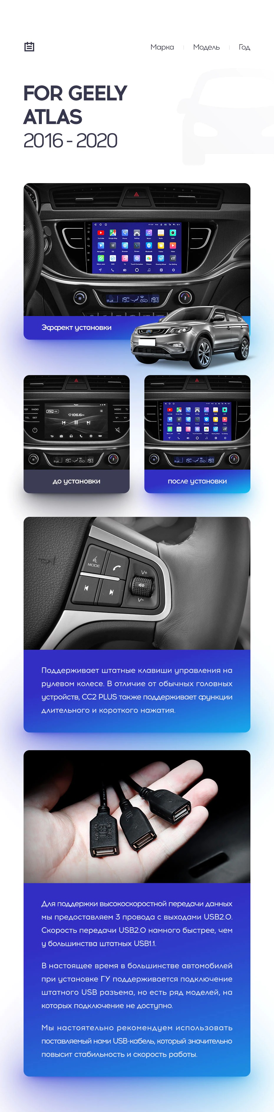 Полный комплект установки магнитолы Teyes с рамкой и проводкой можно выбрать в каталоге штатных магнитол Geely Atlas NL-3 (2016-2020).